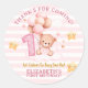 Adesivo Redondo Beary Sweet One Birthday Stickers | Pink Boho Bear