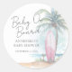 Adesivo Redondo Chamada para Chá de Bebê Boho Beach Surfboard.
