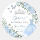 Adesivo Redondo Bebê Blue Floral Princesa Vestido Prata Quinceañer