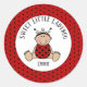 Bebê bonito vestido como uma joaninha com pontos vermelhos e pretos. Adicione seu próprio texto, nome ou mensagem. Excelente para bolsas de favor para chás de fraldas, aniversários e muito mais.