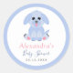 Este adesivo divertido, moderno, elegante e simples da festa do chá do bebê rapaz apresenta um adorável e bonito cachorrinho pintado à mão. A design inclui o nome personalizado e a data do evento na tipografia moderna de tendências.