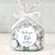 Um adesivo bonito para o seu chá de bebê favorece e obrigado sua correspondência apresentando "obrigado você" em um roteiro na moda com pestanas e uma aquarela azul de pés de bebê. Por baixo, você pode personalizar facilmente com seu nome e data de chá.