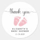 Um adesivo bonito para o chá de sua menina favorece e obrigado sua correspondência com "obrigado você" em um roteiro na moda com pestanas e uma aquarela rosa de pés de bebê. Por baixo, você pode personalizar facilmente com seu nome e data de chá.