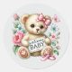 Bebê menina bem-vinda urso Classic Round Sticker