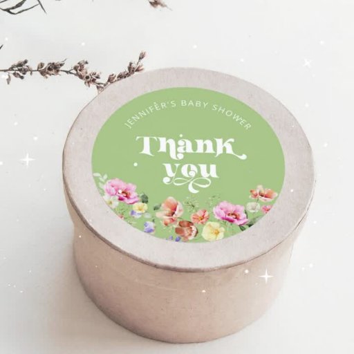 Adesivo Redondo Bebê em chá de fraldas de flor silvestre obrigado