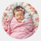Adesivo Redondo Bebê Floral Rosa e Gatinho Branco