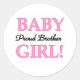 Adesivo Redondo Bebê Garota Orgulhosa Irmão