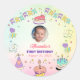 Adicione um toque encantador à sua celebração com nossos adesivos de foto para o primeiro aniversário do bebê menino da Sweet Pastel Party. Esses adesivos circulares atemporais são ideais para lembrancinhas de festa, envelopes ou lembranças devido ao seu design adorável e elegante e cores pastéis suaves. Use um design tão fofo quanto o seu bebê menino para comemorar memórias maravilhosas do seu primeiro aniversário.
