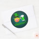 © Sunny Mars Designs. Rua Sláinte Engraçada. O rosto de Patrick Rosto Emoji Round Stickers - Esta Rua de Pat apresenta uma ilustração de um rosto risonho vestindo um chapéu de duende e segurando um copo de cerveja verde ou cerveja. Abaixo, a ilustração é escrita no texto "Sláinte", que é um brinde ou aplauso irlandês que significa "à sua saúde".