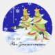 COLOR PALETTE: Tendência de Natal moderna de Azul e Branco com limão amarelo, ouro, verde e vermelho. COLLECTION: Personalizado com seu próprio nome de família usando o campo de modelo fácil, você pode criar suas próprias etiquetas personalizadas, sobras de pacote ou selos de envelope. Este é um adesivo branco, divertido, de Natal e Inverno, adesivo temático, selo ou conjunto de decoração de pacotes que foi feito de pinguins pintados manualmente trabalho de arte de aquarela de Audrey Jeanne Roberts. As árvores de Natal são decoradas com uma terra vermelha escorregada, topos de estrelas girando em pilhas de neve com flocos de neve feitos à mão caindo ao fundo e um pinguim fofo deslizando para baixo em sua barriga e um segundo pinguim dançando com alegria e um pássaro giro com cauda de espiral sentado em uma das árvores cobertas de neve. Este design está disponível em uma grande variedade de produtos.