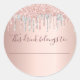 Para uma festa de aniversário feminina e glamorosa. Um fundo metálico dourado rosa falso com gotas de brilho dourado rosa e prata falsa, aparência de tinta pingando. Com o texto: Esta bebida pertence a: