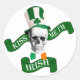 Engraçado crânio patriótico vestindo um chapéu irlandês de shamrock bobo com o Kiss Eu sou o texto irlandês e o arco nas cores da bandeira da Irlanda Visite a LOJA PADDY_O_DOORS para obter produtos correspondentes. CLIQUE EM PERSONALIZAR> EDITAR>FUNDO para alterar a cor de uma faixa de mais de 200 cores
