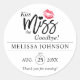 Elegantes adesivos de agradecimento para despedida de solteira ou chá de panela com a frase KISS THE MISS GOODBYE. Lábios vermelhos brilhantes com a palavra Miss em letras cursivas e um pequeno coração e aliança no centro do cartão. Cores preto e branco, clássico simples - combina com qualquer tema. Perfeito para aquela garota jovem e moderna!