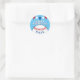 Beisebol Blue Kids Boy Name Happy Birthday Classic Round Sticker. Um bonitinho adesivo de aniversário personalizado de beisebol para crianças. O design tem bandeiras de baseball e bunting em cores vermelhas, brancas e azuis em fundo azul. Personalize este adesivo de aniversário com o nome de uma criança. Excelente para um garoto que ama beisebol.