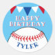 Adesivo Redondo Beisebol Ball Blue Kids Boy Name Happy Birday