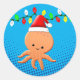 Adesivo Redondo Bela caricatura Octopus Santa Hat Luzes de Natal
