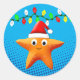 Adesivo Redondo Bela Cartoon Starfish Santa Hat Luzes de Natal