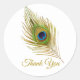 Adesivo Redondo Bela pena de pavão dourada Obrigado
