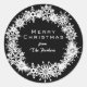 Adesivo Redondo Belas flocos de neve sobre fundo preto