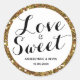 Adesivo personalizado de brilho dourado o amor é doce. Você poderá personalizar facilmente com nomes e a data. Há um design de brilho dourado em torno deste lindo adesivo o amor é doce. Seria um toque cintilante para o seu casamento, chá de panela, aniversário e mais.
