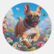 Adesivo Redondo Belo Bulldog Francês e Flores