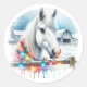 Adesivo Redondo Belo Cavalo Branco no Natal da Fazenda