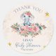 Elefante Floral De Cores Aquáticas Agradecemos O Chá de fraldas Clássico Do Adesivo Redondo. Adicione um toque de encanto adorável aos seus favores de chá de fraldas com este Elefante Floral de Cor de Água Cóta. Obrigado, palermas! Apresentando um delicioso elefante aquarela adornado com flores brancas, esses adesivos são perfeitos para expressar gratidão aos seus convidados. Cada adesivo tem uma forma redonda clássica, melhorando o apelo de seus favores ou decorações. Quer enfeitando bolsas de presentes, envelopes ou favores, esses adesivos são versáteis e doces. Com suas cores vibrantes e design encantadoras, eles certamente trazem sorrisos para o rosto de todos. Torne o seu chá de fraldas realmente memorável com estes adesivos encantadores.