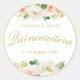Adesivo Redondo belo pincel rosa floral Quinceanera