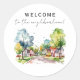 Parabéns aos novos donos de casa em sua nova casa com este doce adesivo "bem-vindo à vizinhança". Personalize o nome de sua empresa na parte inferior e o logotipo na parte traseira.