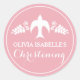 O gráfico da pomba doce é o símbolo do Espírito Santo, paz e amor. Um design perfeito para comemorar o Natal ou Batismo da sua bebê. Ilustração branca e texto em fundo rosa bonito. Também disponível em azul para rapazes. Faz uma combinação perfeita para nossa linha de convites e selos "Bessings for Baby", e fica adorável em envelopes ou favoritos para festas.