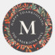 O nosso adesivo redondo clássico preto monograma, elegante e vermelho, de Berries vermelhos e folhas verdes, monograma, apresenta uma ilustração aquosa das folhas coloridas de queda em tons de amarelo, laranja, pincel, sábio e verde-lacrimogêneo acentuados por bagas vermelhas maduras., tudo sobre fundo de cinza de carvão negro. Todo o texto no adesivo pode ser atualizado para criar um acessório exclusivo de empacotamento de presentes ou endereçamento de presente.