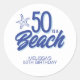 Celebrar este aniversário especial com estes 50 é um adesivo de aniversário de praia! Vinhetas de Aniversário de Praia 50ª, Desenhadas Mão Branca