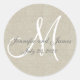 O Elegante Beige Linen Monograma, Favor de Casamento Russo, Vedante de Vinheta ou Vedais de Envelope de Casamento. Totalmente personalizável. Elke Clarke©. Fundo de linhagem bege com efeito fotográfico impresso, com monograma branco e cinza e texto branco do script.