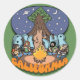 Uma sequência gigante num céu estrelado com "Big Sur" em letras grandes atrás de uma fogueira hippie com urso dançante e "California" abaixo. Arte colorida em t-shirts, suores, cartas, presentes.
