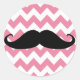 Adesivo Redondo Bigode Negro Engraçado E Padrão De Chevron Rosa