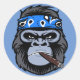 Biker gorilla fumando charuto fumando cartoon natural cartoon art Classic Round Sticker