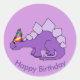 Os adesivos de aniversário mostrados com um impressão de dinossauro fofo. Personalize este item e adicione um nome ou comprar como está.