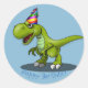 Os adesivos de aniversário mostrados com um impressão de dinossauro fofo. Personalize este item e adicione um nome ou comprar como está.