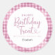 Adesivo Redondo Birthday Treat Pink Gingham Script