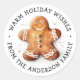 Etiquetas para presentes de férias de inverno ou selos de envelope com ilustração de aquarela de um biscoito de gengibre e texto personalizável "votos quentes de férias".