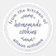 Adesivo de biscoitos caseiros rústicos e modernos com o texto da cozinha de, biscoitos caseiros e seu nome em caligrafia moderna azul marinho em um fundo branco. Basta adicionar seu nome e o nome do produto ao rótulo caseiro. Exclusivamente projetado para você pelo Happy Dolphin Studio. Se precisar de ajuda ou produtos correspondentes, entre em contato conosco em happydolphinstudio@outlook.com.