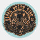 Logotipo comercial fictício para "Black Death Tire Co." Crânio alado e rato com bandeiras marcadas num selo redondo. T-shirts e presentes.