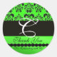 Adesivo Redondo BLACK EMERALD GREEN DAMASK MONOGRAM Obrigado