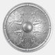 Lembrando os antigos e medievais escudos de batalha, este escudo decorativo com aspecto prateado irá adicionar um talento único aos seus projetos, raspando páginas ou como selos de envelopes. Design celta.