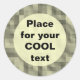 Modelo de autocolante personalizado adiciona suas próprias palavras, nome, slogan etc. Se você pressionar o botão "personalizar", também poderá alterar o estilo e o tamanho da fonte. O gráfico de fundo é 1200 pixels tão compatível com todos os tamanhos de botão, até mesmo com o tamanho colossal de 6".