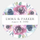 Coloque seus envelopes ou favores com nossos adesivos personalizados de casamento do Midnight Blooms. Os autocolantes personalizados apresentam seus nomes e data de casamento enquadrados por flores roxas, azuis e mauve aquáticas com folhas verdes. Projetado para coordenar com nossa coleção de casamento Midnight Blooms.