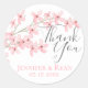 O primavera cor-de-rosa bonito floresce com "obrigado" e nomes personalizados e data de casamento podem ser usados para favores ou editar texto com monograma ou outro texto para envelopes de casamento e muito mais.