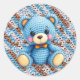 Adesivo Redondo Blue and Brown Crocheted Teddy Bear