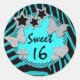 Adesivo Redondo Blue Black Silver FAUX Glitter Sweet 16 Sticker