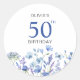 Adesivo Redondo Blue Floral 50th Birthday
